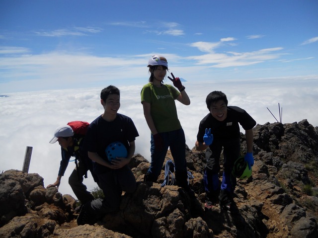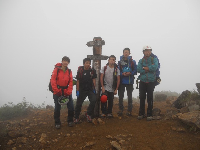 7月16日 赤岳頂上(左から:大谷、國谷2年、近藤1年、白土1年、佐藤1年)