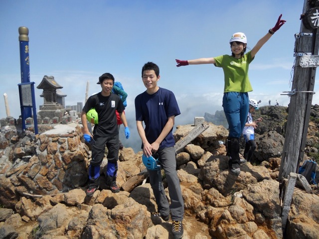 赤岳頂上の1年生3名(左から生産工学部 近藤、危機管理 佐藤、生物資源 白土)