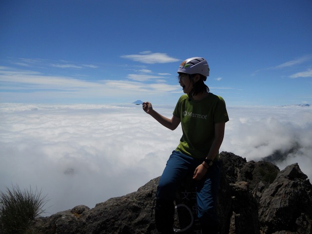 だが頂上は晴れており、空はどこまでも青く澄んで気持ちいい。雲海に浮かぶ富士山は
