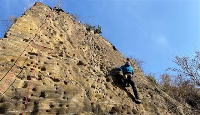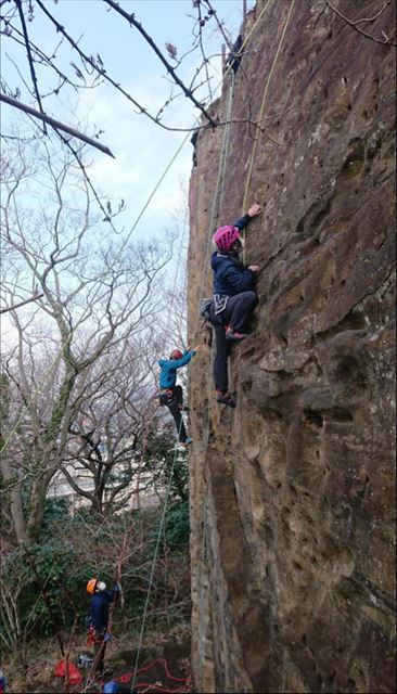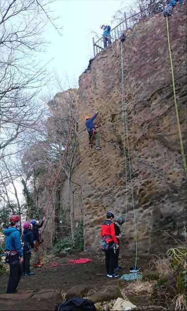 た。ビギナーフェース上部に向かうため、最初に國谷コーチがFIXロープを張り、後から山崎、大谷