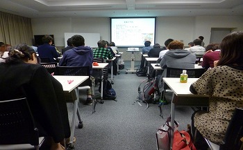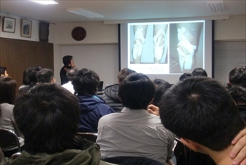 平成25年12月2日(月)19:00〜20:30 野口医師による講習会の様子(東京体育館 第2会議室にて)